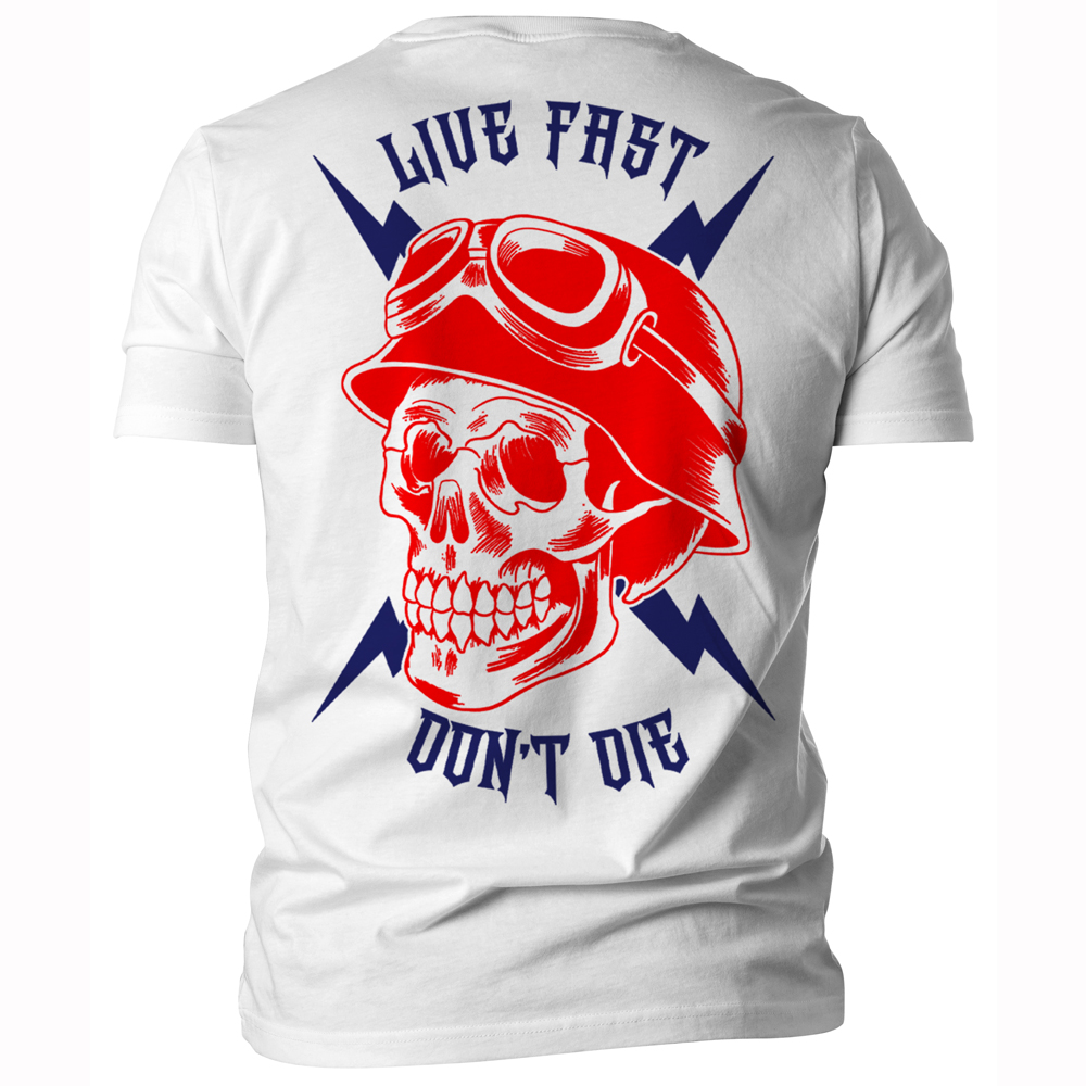 Druck: vorne auf Brust + Schulter und großer Rückendruck